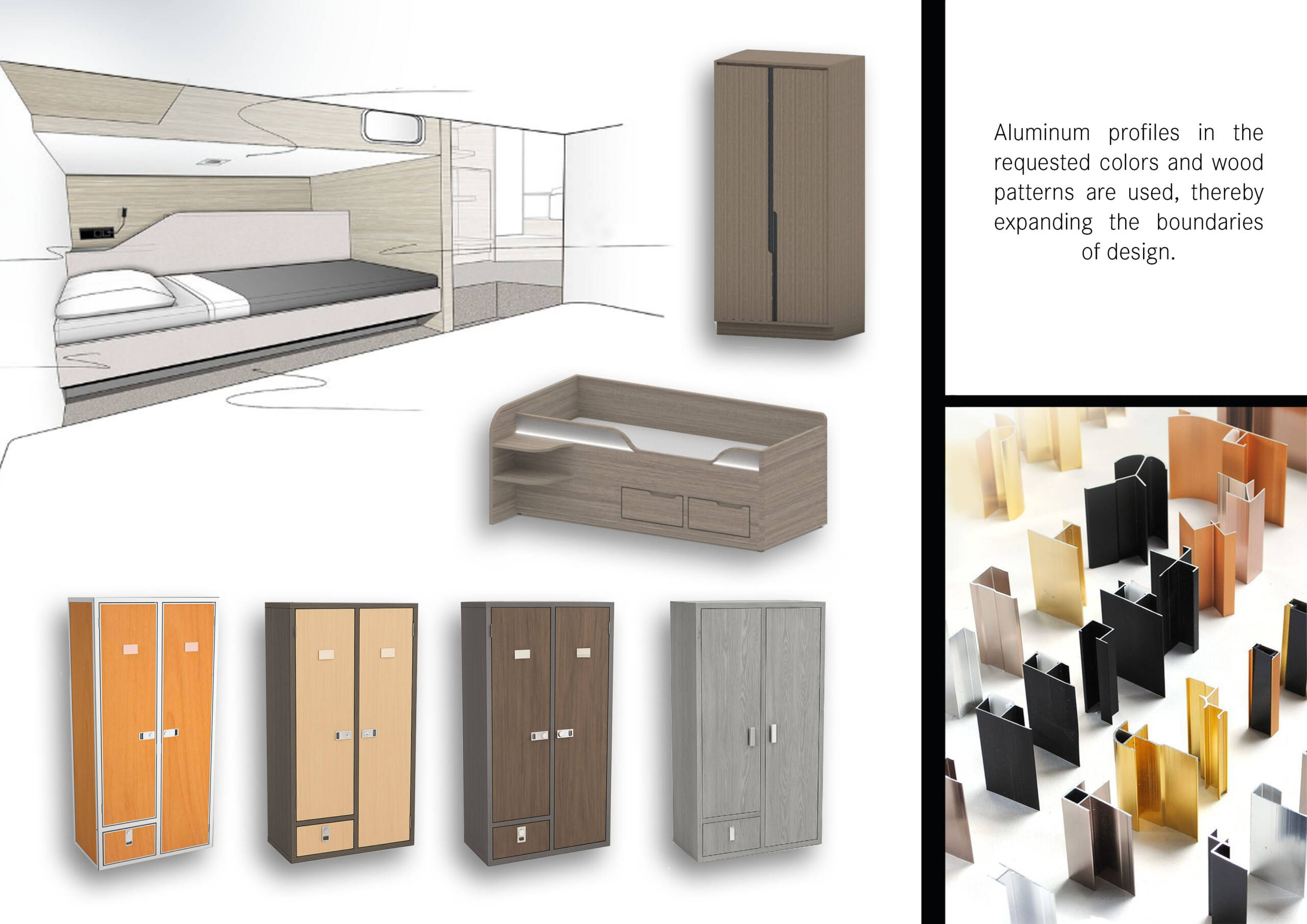 Our aluminum furniture systems are engineered for applications requiring optimized strength-to-weight ratios, fire safety, and durability. Manufactured using internationally certified components (FTP, MODUL D compliant), these products serve naval surface vessels, submarines, and specialized platforms. The lightweight construction reduces vessel weight while meeting stringent military specifications for shock, vibration, and fire resistance.